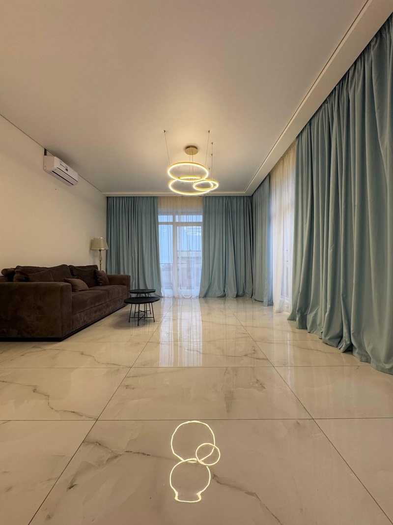 Просторная современная гостиная, которую легко можно трансформировать в конференц-зал либо в зал для медитаций и йоги.